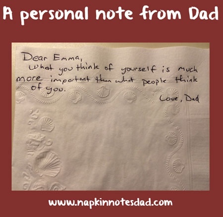 "Drága Emma! Sokkal fontosabb, hogy te mit gondolsz magadról, mint az, hogy mások mit gondolnak rólad. Szeretettel, Apa"