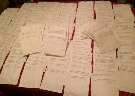 Garth kiszámolta, hogy további 826 üzenettel ellátott szalvétára van szüksége addig, míg lánya elvégzi a főiskolát, ezért most előre dolgozik, hogy a következő években is ott lehessen minden tízórai mellett egy apai üzenet – és már közel a cél, alig 40 szalvétának kell még elkészülnie.