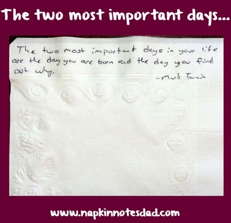 "Életed két legfontosabb napja az, amelyiken megszülettél és amelyiken rájöttél, hogy mi célból. - Mark Twain"