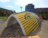 A játszótér eredetileg és most is kilenc játékelemmel állt a kicsik rendelkezésére, de amellett, hogy remek teret ad a mozgásra, még művészi és esztétikai értékeket is képvisel, hiszen a játszóteret szobrászművészek által faragott szobrok, állat és emberfigurák népesítik be.