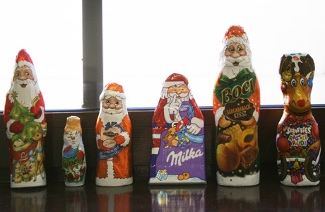 A boltok polcain nemcsak a Télapó képviselteti magát csoki formában: találkozhatunk angyalkával, hóemberrel, rénszarvassal, sőt, az angolszász kultúrára tekintettel karácsonyfával is. Gyomormosásig tudtuk volna magunkat kóstolni, ha a kínálaton múlik a dolog.