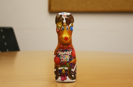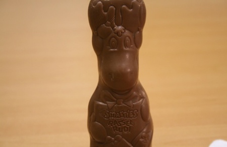 A rénszarvast – a Smarties-töltelék miatt – nem mertük földhöz, azaz asztalhoz vágni, inkább amolyan disztingvált módon kettétörtük. A kérdésre, hogy mennyi Smarties van benne, egy vérbeli anyuka válaszát kaptuk: „Jut mindenkinek!”. Ízét tekintve úgy véltük, hogy bár van valami halovány műanyagos mellékíze, végeredményben csizmakompatibilis, kevésbé édes, és zsíros. 3,4 pontot kapott.