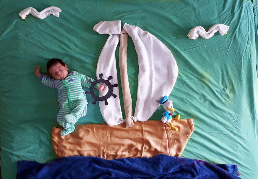 Marko baba anyukája csodaszép gyerekkori emlékeket akar majd gyerekének átadni, így egy nem mindennapi fotósorozat készült róla. Az egyedüli anyag, amit a fotó elkészítésében használtak egy darab szövet és képzelőerő volt. :) Hogy tetszik nektek?