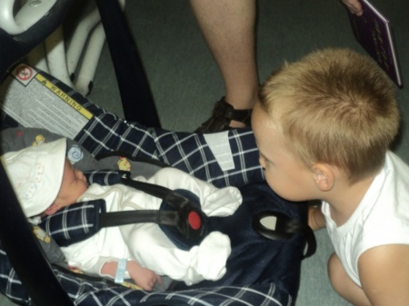 Micó hétfőn született, pénteken engedtek haza minket a kórházból. Csanád nagyon boldog volt. Az első dolog, amit a kórház folyosón az öccsének mondott, így hangzott: Micóóóóóóóóóókaaaaa!!!” A második, pedig így: „Én mindig vigyázni fogok rád!” – na erre el ne felejtsem emlékeztetni, mikor lapáttal szórja majd a játszótéren a homokot a fejére…