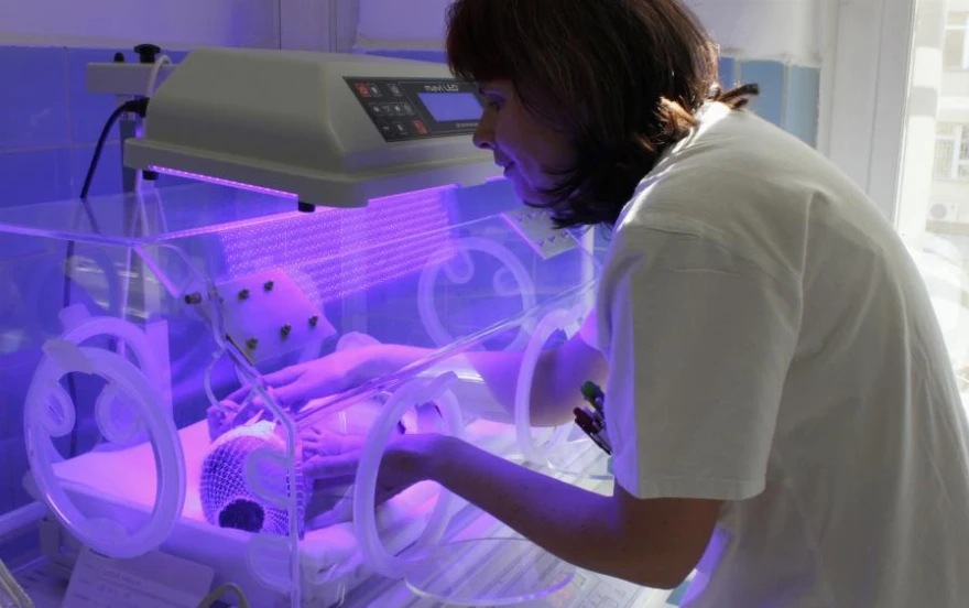 Fiziológiás sárgaság sok újszülöttnél jelentkezik – magyarázta Prof. Dr. Orvos Hajnalka, a szegedi szülészeti és nőgyógyászati klinika újszülött osztályának vezetője. A méhen belül az újszülöttek szervezetében több, az oxigént szállító vörösvértest található. A születés után ezeknek a vörösvértesteknek egy része szétesik, bilirubin szabadul fel, a bőr sárgássá színeződik. Ha a bilirubin mennyisége elér egy bizonyos szintet, akkor fototerápiás kezelés szükséges. Ha nem kezelik az újszülöttet, a sárgaság akár olyan fokot is elérhet, hogy a bilirubin átkerül a vér-agy gáton, és károsíthatja az agyat. Az osztályvezető elmondta azt is: a most megvásárolt készülék a harmadik ilyen modern fototerápiás eszköz a klinikán.
