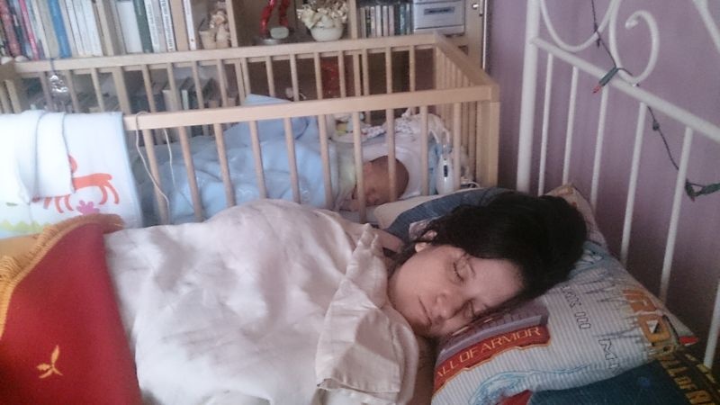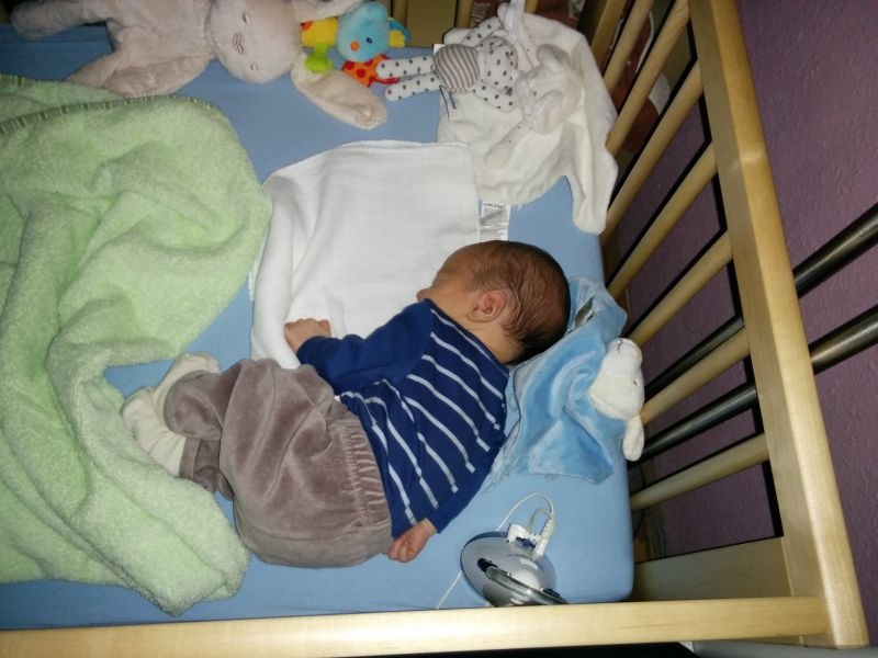 Mimó már teljesen belakta a kiságyat, sőt, kukackázik, azaz vándorol is benne. Először csak lerugdosta a takaróját, mostanra már célirányosan felénk halad. Minden alvás után egy-két kéz és/vagy láb lóg ki a kiságy rácsain. Szerencsére a feje elég nagy ahhoz, hogy ne férjen be közéjük. Ez a mocorgás egy roppant kellemetlen jelenséget idézett elő. Az egyik éjjel éktelen vijjogásra ébredtünk, és úgy ugrottunk ki az ágyból, mintha képzett tűzoltók lennénk: a légzésfigyelő bejelzett, mert Mimó elhagyta a figyelt területet. Másnap gyorsan át is rendeztem az érzékelőlapokat.