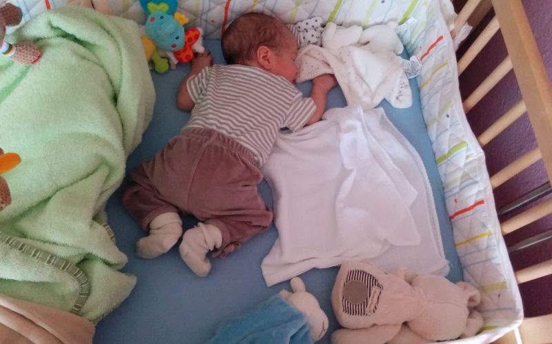 A kézmizéria miatt komoly gondban voltam a fürdetésnél, mert bármennyire is langyos volt víz, égette a kezem. Ráadásul fogni sem tudtam. Így nehéz egy majd’ négy kilós gyerekkel. Merthogy beindult ám Mimó. A kezdeti stagnáláshoz képest rohamtempóban kezdett nőni. Le is álltunk a tápszerrel, ami így bevégezte feladatát: beindította a növekedést, pont. Már azt számolgatjuk, hogy ha ilyen gyorsan gyarapodik, akkor nem kell egy újabb százas pakk újszülött pelenkát venni, hanem egy méretet ugorhatunk. A ruhákkal ugyanez a helyzet, tényleg elkezdte kinőni őket egyik napról a másikra. Kár értük, megszerettük őket.