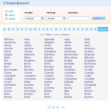 Ha már tudjátok a még pocakban fejlődő gyerek nemét, akkor eszerint is kereshettek neki nevet. Az egyes nevek mellett megtaláljátok az esetleges rokonnevek felsorolását is. Arról is találtok információt, hogy mennyire gyakori nevet szántok a leendő csemetének.