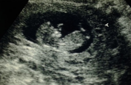 Az első napokban, természetesen, elmentünk egy magán ultrahangos vizsgálatra. Órákkal előtte gombóc volt a torkomban és összeszorult a gyomrom. Az iker elvesztése óta nem találkoztam a kicsivel, és az előző vizsgálaton talált majdnem 5 centis ciszta a petefészkemen is aggasztott.