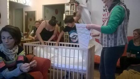 A nagy dobás még az elmúlt héten ezen kívül az volt, hogy lett Julcsinak kiságya, nem is akárhogy! Vasárnap délután egyszer csak ellepték az otthonomat meglepetésből a barátaim, volt kollégáim és egy teljesen, mindennel felszerelt kiságyat hoztak magukkal. Hirtelen össze is szerelték, be is rendezték, én meg csak kapkodtam a fejem, hogy mi történik. Hihetetlenül jólesett, tisztára sokkot kaptam, amikor beállítottak ezzel a hatalmas ajándékkal. Még sosem volt ilyen élményem, meghatódtam nagyon.