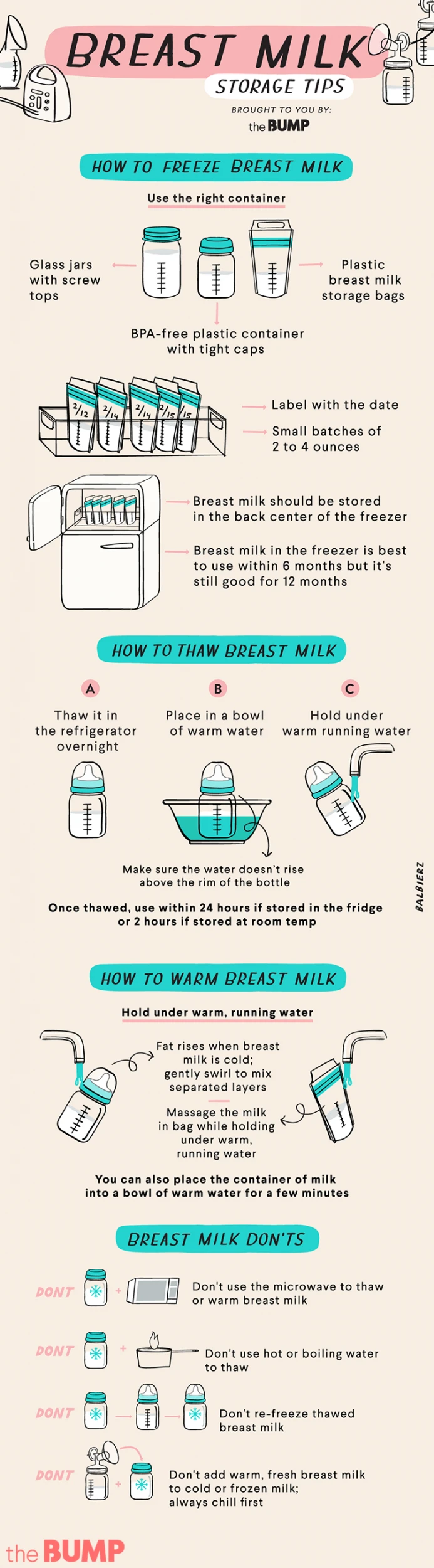 Győződj meg arról, hogy a nagyi, a babysitter pontosan tudja, hogyan kell elkészíteni egy üveg anyatejet (mikrohullámú sütés nem engedélyezett - csak meleg vízzel lehet felolvasztani), először a legrégebbi tejet kell elhasználni, valamint pontosan jegyezd fel segítődnek azt is, hogy mennyi és milyen gyakran van szüksége a babának az anyatejre.