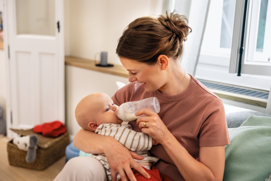 A szoptatás több mint táplálás: biztonság, testközelség, tanulás. A puha mellbimbó erősíti a baba szájizmait, előkészítve őt a rágásra és beszédre. De ha nem lehetséges a szoptatás? Egy megfelelően választott cumisüveg akkor is segíthet. Ehhez olyan etetőcumira van szükség, ami aszimmetrikus, és kellőképpen puha - akár egy valódi mellbimbó. Ilyen például a NUK First Choice+ cumisüvegek szívókája. Ígya cumisüveges táplálás valódi alternatíva akkor is, ha nem ideálisak a körülmények. Az anyai ölelés pedig meghitt, szeretetteljes élménnyé varázsolja az etetést.
