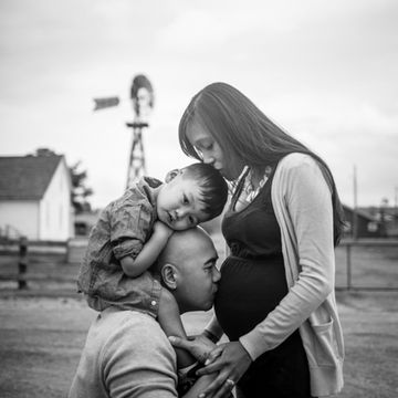 Szerepeljen az egész család a fotón: apa, anya, nagytesó, házi kedvencek… mindenki egy kupacon! Hát mi fejezhetné ki jobban azt a fantasztikus védőhálót, ami majd a pici minden apró rezdülését óvja?! A kép kompozíciójára végtelen lehetőség létezik; függ ez attól is, hány gyermeketek van már és milyen idősek. |