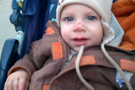 Azt már ugye említettem, hogy szeretünk családilag bicajozni, sajnos a legutóbbi ilyen nem sikerült túl jól. Újra elindultunk, megcéloztuk a játszóteret, előtte 2 méterrel elesett Geri,a minek a következménye 1 medencezúzódás, 1 monokli, 1 törött szemüveglencse (amit 2 hónapja csináltattuk...). Hát no comment... Nem ártott volna, ha egy sebész megnézi, de 2 szelet torta elfogyasztása és egy óra intenzív focizás után gyógyultnak nyílvánítottam. Ez után a hab a tortán a legkisebb arccal esett a betonjárdára, de az már tényleg csak pár karcolás volt, a visítás viszont annál nagyobb. Hát így legyen nyugodt a várandósságom... Esélytelen...