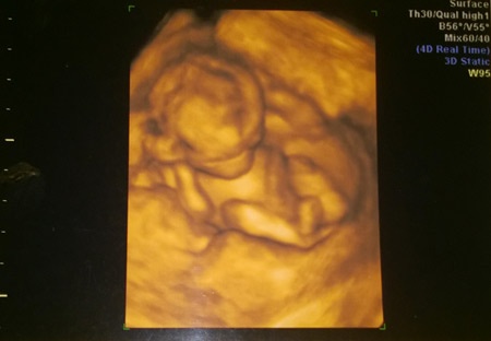 Viszont sztrájkolt a kisasszony, egyáltalán nem lehetett látni az arcát, végig csücsült a pocakomban, megmozdulni nem volt hajlandó, oldalról láttuk csak, sőt egy idő után ezt is megunta, és egyszerűen hátat fordított, és bebújt a méhlepénybe. Tornázhattam, guggolhattam, köhöghettem én amennyit akartam, Őnagysága ugyanabban a pózban volt szinte végig a fél órás vizsgálat alatt. Mondjuk én teljesen megértem, gondolom tiszta anyja már most, ezért nem vehető zokon tőle, ha csak a jóképű dokibácsinak hajlandó megmutatni magát!