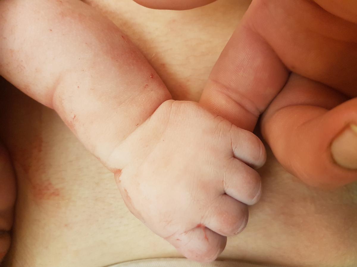 3710 gramm 58 cm-el született. Nagy babának számított az én testfelépítésemhez és a pocim méretéhez képest. Nagyon elfáradtunk mind a ketten. Egyszerűen hihetetlen volt, mikor rárakták a hasamra. Sokkot kaptam konkrétan. Ekkor már azt csinálhattak velem odalent, amit akartak. A nagy csodálások közepette a doki összevart.