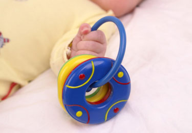 - csörgő és plüssök: hajlamosak vagyunk a babát már születésekor elárasztani játékokkal. Pedig felesleges, legtöbbjük úgyis a hétköznapi használati tárgyakkal szeret majd molyolni. A plüssök, ahogy azt minden gyakorló szülő tudja, előbb-utóbb el szokták árasztani a lakást, ezért minél később jelenik meg első képviselőjük, annál jobb. Arról nem is beszélve, hogy a gyerek lenyelheti a belőlük kitépett szöszöket, és tisztántartásuk is gondot okozhat, márpedig a poratkák előszeretettel telepednek meg bennük.