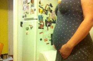 Egyébként az ultrahangon kiderült az is, hogy miért nem éreztem annyira eddig: elöl tapadt a méhlepény, ami mögé ő jól bebújt, így valóban nehéz a kis pillangórezgéseket érezni. A pocakom pedig egyre gömbölyűbb és egyre feljebb ér, ami néha azt eredményezi, hogy eltévesztem a testhatáraimat és nekiütközöm a hasammal néhány bútornak-embernek-falnak. Ott már nem férek el, ahol eddig igen, és ezt sokszor benézem, szokni kell még, hogy már ekkora lett a pocak. Azért ilyenkor örülök annak, hogy vastag a hasfalam.