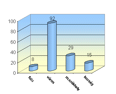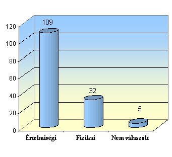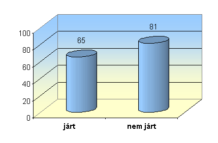 A vizsgálat során két forrásból jutottam a szükséges információkhoz. Egyfelõl 100 db kérdõívet osztottam ki három intézmény szülészeti osztályán, Budapesten a Szent Imre Kórházban és a Szent István Kórházban, valamint Szegeden a Szülészeti és Nõgyógyászati Klinikán. A kiadott kérdõívekbõl 80 db-ot kaptam vissza, amelyek közül 6 értékelhetetlen volt. A másik forrás, pedig az Internet volt, ahol a Babanet weboldalán megjelenített felhívásra válaszoltak a kérdéseimre az érdeklõdõk. Így 76 db kérdõív érkezett vissza, ebbõl 4 db volt értékelhetetlen. A családközpontú szülészet témában végzett vizsgálatom eredményeként összesen 146 édesanya tapasztalatairól tudok beszámolni. A megkérdezett édesanyák átlag életkora 28 év az édesapáké, pedig 31 év. Az iskolai végzettség tekintetében mind a nõk, mind a férfiak körében a szakközépiskola, illetve gimnázium a jellemzõ (nõk:51%; férfiak:37%), de viszonylag nagy a felsõfokú végzettséggel rendelkezõk aránya is( nõk:36%; férfiak:31%), a nõk 9%-a, a férfiak 22 %-a rendelkezik szakmunkásbizonyítvánnyal. A párok között nyolc általános iskolai végzettségû is elõfordul, a nõknél közel 3%, míg a férfiaknál 4%-ban. I. sz. ábra A nõk iskolai végzettsége Igen nagy a megkérdezettek körében a szellemi foglalkozásúak aránya. Különösen az édesanyák esetében, náluk ez az arány 75%-os. (II. számú. ábra) Az édesapák közül nyolcvannégyen végeznek szellemi tevékenységet, a hatvan fizikai dolgozóval szemben. II. sz ábra A vizsgált nõk foglalkozás szerinti megoszlása Valószínûsítem, hogy a magasabb iskolai végzettségûek nagy száma, valamint a szellemi foglalkozásúak nagy aránya hátterében az áll, hogy a kitöltött kérdõívek majdnem fele (146 db-ból, 72 db) az Internetrõl származik. Ez a szolgáltatás elsõsorban az õ körükben terjedt el, illetve népszerû. A vizsgált személyek lakóhely szerinti megoszlására az jellemzõ, hogy túlnyomó részük városban él (92 fõ). Ezt az értéket a megyeszékhelyen, valamint községben lakók száma messze alulmúlja. A legkisebb az aránya a falusi lakosoknak. A nõk lakóhely szerinti megoszlását a III. számú ábra szemlélteti. III. sz. ábra A megkérdezett nõk lakóhely szerinti megoszlása Utólag a kérdõív kritikájaként meg kell említenem, hogy Budapestet nem jelöltem meg önálló kategóriaként, pedig mint Magyarország fõvárosát különálló szociológiai egységként kell tekinteni. A megkérdezett nõk több mint 50%-a (79 fõ), elsõ szülése élményét élte át. A második terhességüket viselõk száma is viszonylag magas volt (49 fõ). A többedszer szülõk aránya 13%-os A legtöbben tervezték terhességüket, és örültek a születendõ gyermeknek. Ez jellemzõ volt mind a nõkre, mind a férfiakra. Csak nagyon kevesen nyilatkoztak úgy a terhességgel kapcsolatos kérdésemre, hogy elfogadták a tényét (nõknél 2 fõ, férfiaknál 8 fõ). Negatív megnyilvánulás egy sem volt. A vizsgálati adatok elemzése során kiderült, hogy a megkérdezett nõk többsége (55%) nem vett részt szülésre felkészítõ programban. (IV. sz. ábra) A férfiak részvételi aránya 33%-os volt. IV. sz. ábra A nõk részvételi aránya a szülésre felkészítõn Érdekesnek találtam, hogy a felkészítõn tapasztalható alacsony részvételi arány dacára a nõk többsége együttszült a párjával (108 fõ). Csak 38 esetben nem volt együttszülés. Az apák részvétele a legtöbb esetben közös elhatározásból történt (97 fõ). 15 esetben az anya, míg 8 esetben az apa kívánságára. Viszonylag sokan, a megkérdezettek 18%-a nem válaszolt erre a kérdésre. Arra a kérdésre, hogy beváltotta-e az együttszülés a hozzá fûzött reményeket 94 fõ igennel válaszolt, 6 fõ esetében, csak részben, 4 fõnek egyáltalán nem jelentett segítséget. 46 nõ nem válaszolt a kérdésre, de ebben benne vannak azok az édesanyák is, akik párjuk jelenléte nélkül szülték meg gyermeküket. A vajúdás és szülés során a nõk számára rendelkezésre álló fájdalomcsillapító eljárások közül a legtöbben a speciális légzéstechnikát és a különbözõ testhelyzeteket alkalmazták. A relaxációs technika kevésbé népszerû, a megkérdezett nõknek csak 30%-a próbálta ki. Nagyon sokan, a vizsgálati alanyok közül 33 fõ nem válaszolt a fájdalomcsillapító eljárásokkal kapcsolatos kérdéseimre. Ennek valószínûleg az-az oka, hogy tartalmilag a felkészítõn szerzett információval kapcsolatos kérdéshez soroltam õket és mivel sokan nem jártak felkészítõre automatikusan átléptek a válaszadáson. Az adatok elemzése során, a szülésre felkészítõn való részvételi kedv tekintetében kiderült, hogy elsõsorban a magasabb iskolai végzettségûek veszik igénybe a szülészeti intézmények ilyen irányú szolgáltatásait. A legtöbben a szakközépiskolai, illetve gimnáziumi érettségivel rendelkezõ nõk jártak el a felkészítõre (48%). A diplomások 42%-a, a szakmunkás bizonyítvánnyal rendelkezõk 8%-a, míg a nyolc általános iskolai végzettségûeknek csak 1%-a tartotta fontosnak a részvételt. Összefüggés mutatkozott a megelõzõ szülések száma, illetve a felkészítõn való részvételi kedv között. A kapott eredményekbõl az derült ki, hogy elsõsorban az elsõ gyermeküket viselõ terhesek látogatták a foglalkozásokat (46%). Viszonylag nagy volt a részvétel a második szülésükre készülõ nõk körében is (39%). A többedszer szülõ nõk körében azonban a részvételi kedv jelentõsen lecsökken. Harmadik terhesség esetén 3%, negyedik terhesség esetén 9%, ötödik terhességnél már csak 2 % járt el az elõadásokra. Úgy tûnt az a tény, hogy a párok elõre tervezték-e a gyermek jövetelét, vagy sem kev