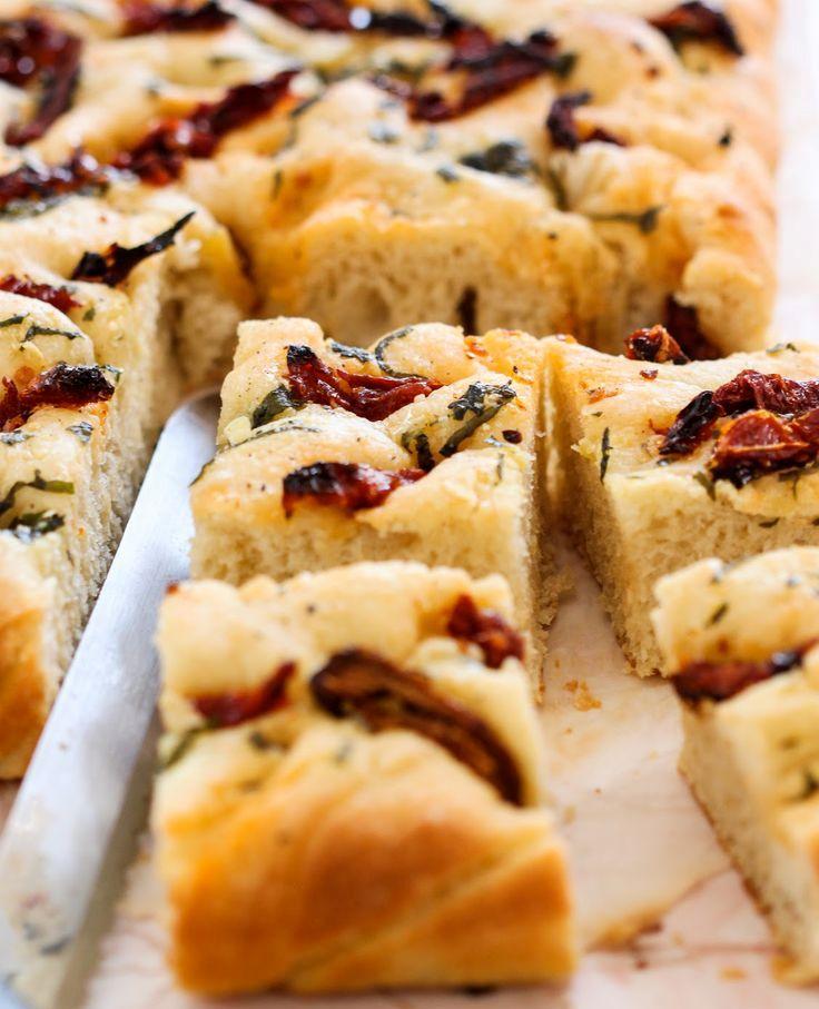 A tésztát egy vékonyan kiolajozott edénybe tesszük, a tetejét megkenjük olajjal, és műanyag fóliával letakarva, meleg helyen a duplájára kelesztjük (1-2 óra). Ezután egy spatulával óvatosan átforgatjuk, hogy a levegőt kiszorítsuk belőle.