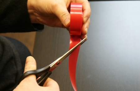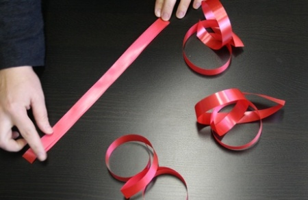 Először is - szélességtől függően, vágjatok le a szalagból 4 db 50-70 centiméter hosszú darabokat. A vastagabb szalagból hosszabb csíkok kellenek! Ezután mind a négy szalagot hajtsátok félbe - még akkor is, ha minden pöndörödési tudományukkal ellen próbálnak állni.