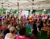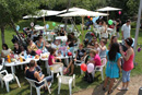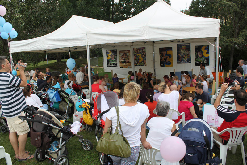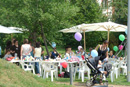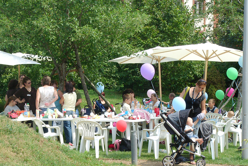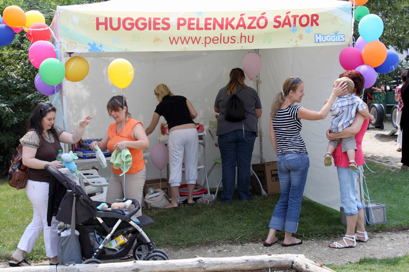 | Reggel kilencre az időjárás is kegyeibe fogadott bennünket, így az első látogatók gyönyörű napsütésben vehették birtokba a Barátságos Park körüli területet. A gyerekek önfeledten játszhattak, a szülők meg a fák árnyékában, vagy kényelmesen a napernyők alatt pihenve élvezhették csemetéjük örömét. | |||||||||||||||||||||||||||