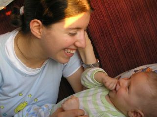 ) Mondjuk csak 2szer alszik altalaban napkozben, de ha en is lefekszem vele a mi agyunkba, akkor kepes akar 2 orat is aludni... Mar nyul a targyakert, mindent a szajaba vesz es ragcsal meg nyalogat, es rengeteget "magyaraz" meg kiabal, az a legviccesebb amikor hisztizik, akkor meg szinte mar uvolt. De egybkenet nagyon edes mosolygos kis mano!