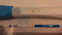 Sziasztok lanyok, gondoltam felteszem ide a ma reggeli tesztecském eredményét, a felsö stick még a szerdai (2 nap keses utan 3.nap reggeli) a masik pedig a csikocska alul a mostani :)